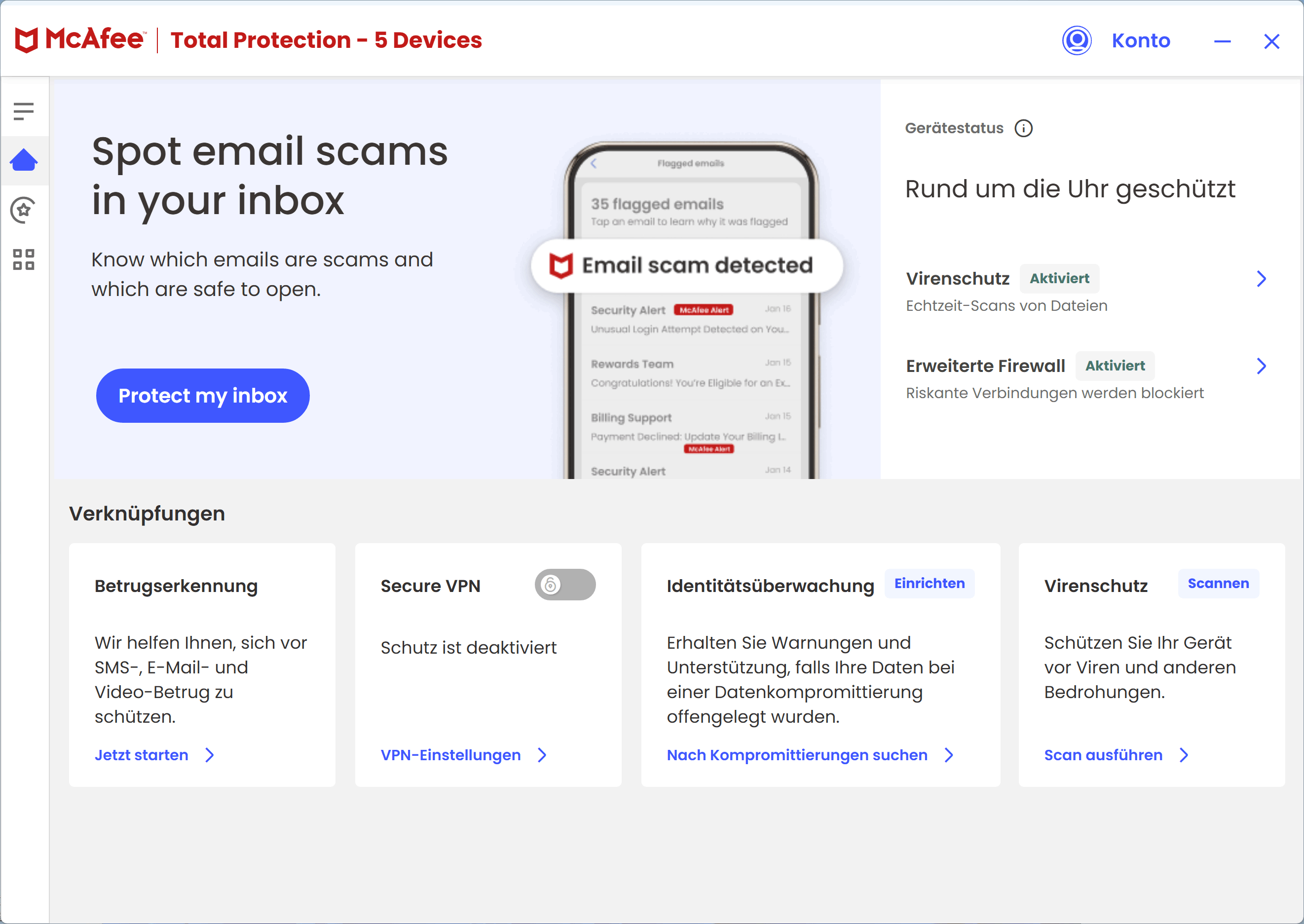 McAfee Total Protection bündelt alles, was Sie benötigen, um Ihre Geräte sicher zu halten.
